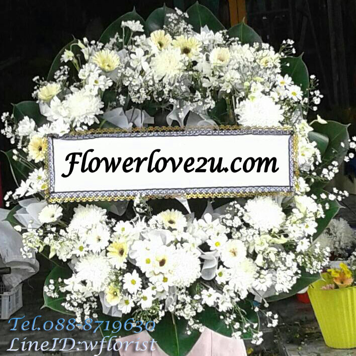 พวงหรีดดอกไม้สด ทรงแบ่งช่อ